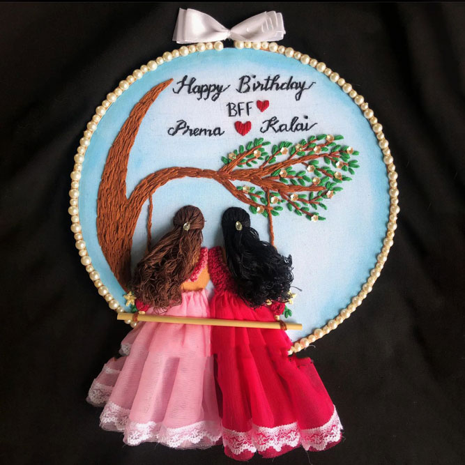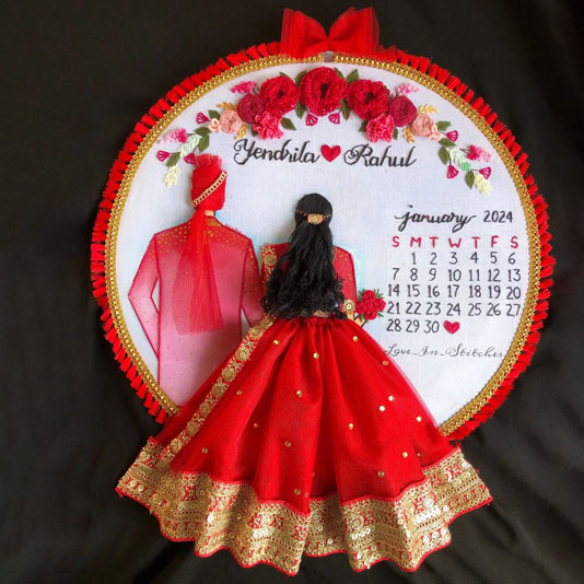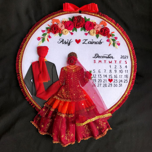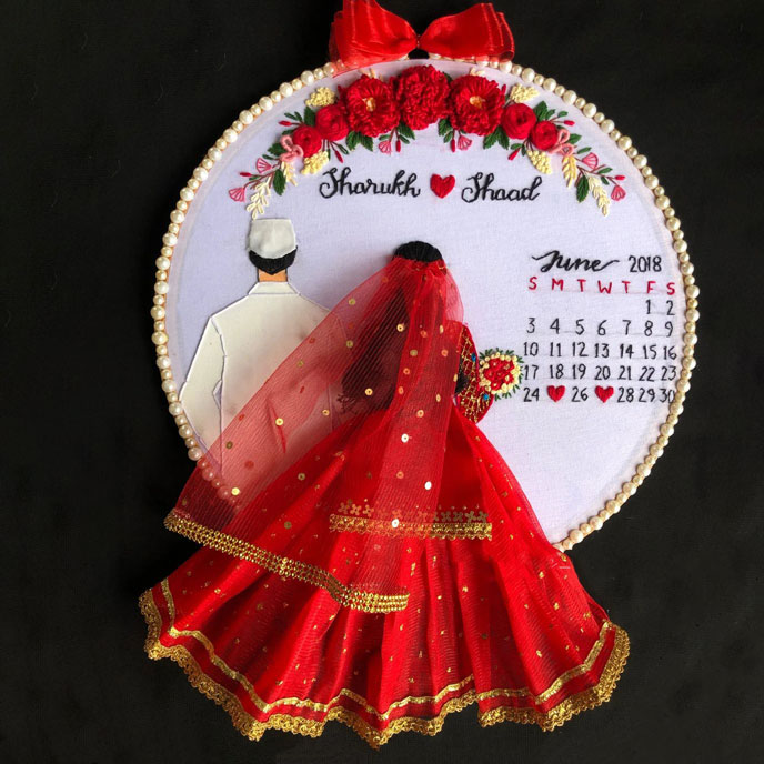 The new trend Embroidery work wedding couple as gift to keep the special memories with them always